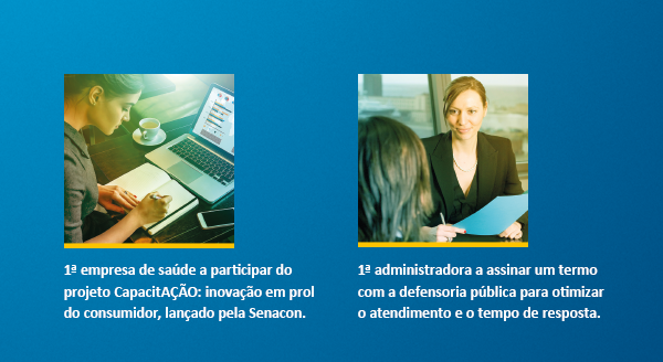 - A companhia também foi a primeira empresa do setor de saúde, e a segunda no país, a participar do projeto “CapacitAÇÃO: inovação em prol do consumidor”, lançado pela Secretaria Nacional do Consumidor em parceria com a Escola Nacional de Defesa do Consumidor e com o Consumidor.gov.br. O foco do projeto é aperfeiçoar o atendimento ao cliente.