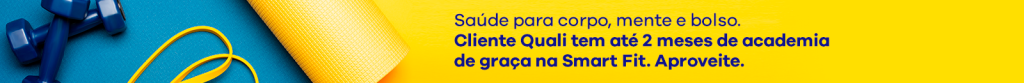 Dê o primeiro passo para investir na sua saúde hoje começando a praticar atividades porque, graças à parceria entre Smart Fit e a Quali, você que já é nosso cliente pode ter duas mensalidades isentas*, entre em nosso site para saber mais! Acesse smartfit.com.br/clientesquali