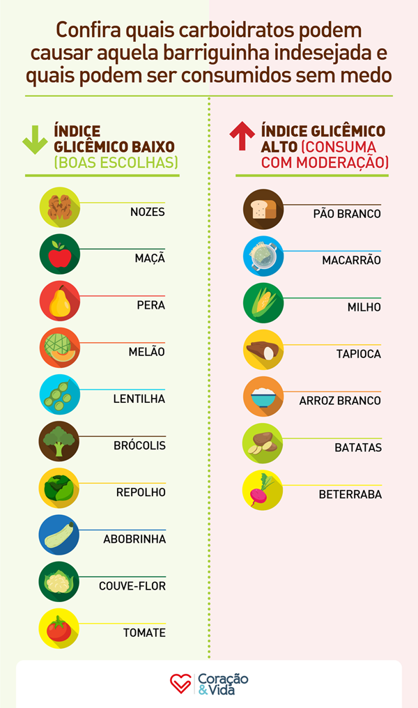 A nutróloga Letícia Fontes, membro da Associação Brasileira de Nutrologia (ABRAN), explica que os carboidratos, se consumidos em excesso, levam ao acúmulo de gordura no abdômen. Quando se come um carboidrato, ele é transformado em glicose (açúcar) na hora da absorção, e cai na corrente sanguínea.